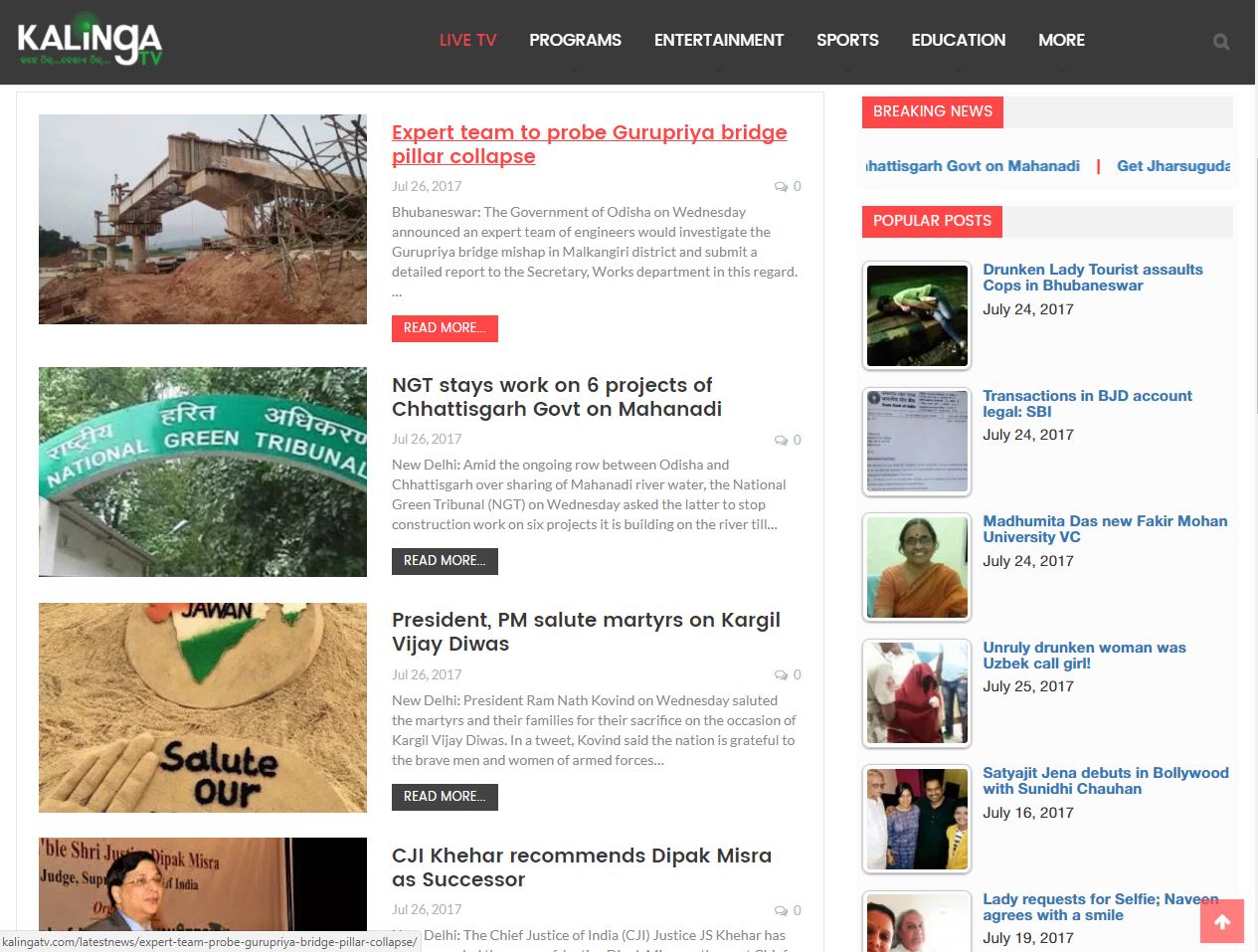 KalingaTV Web design
